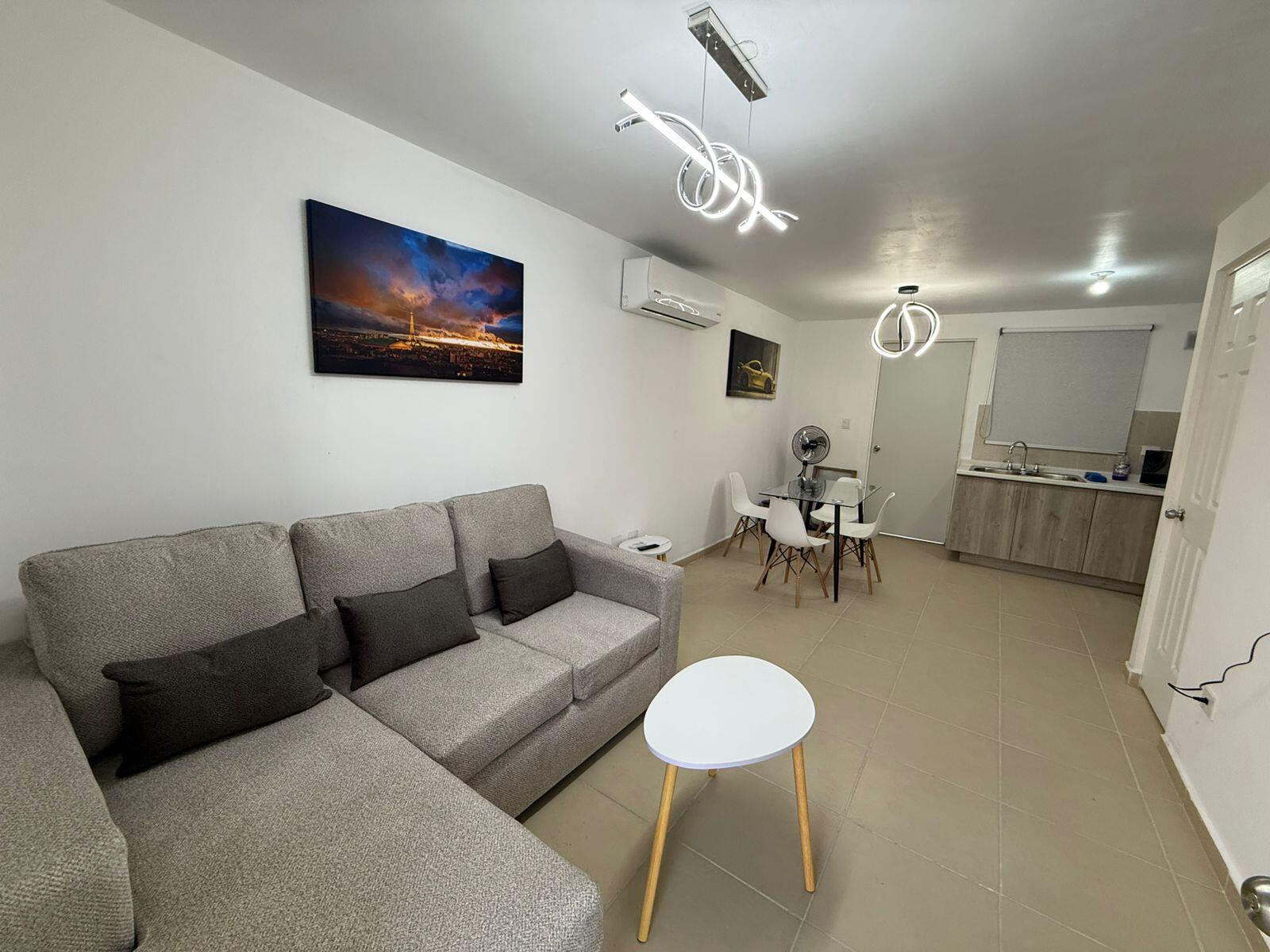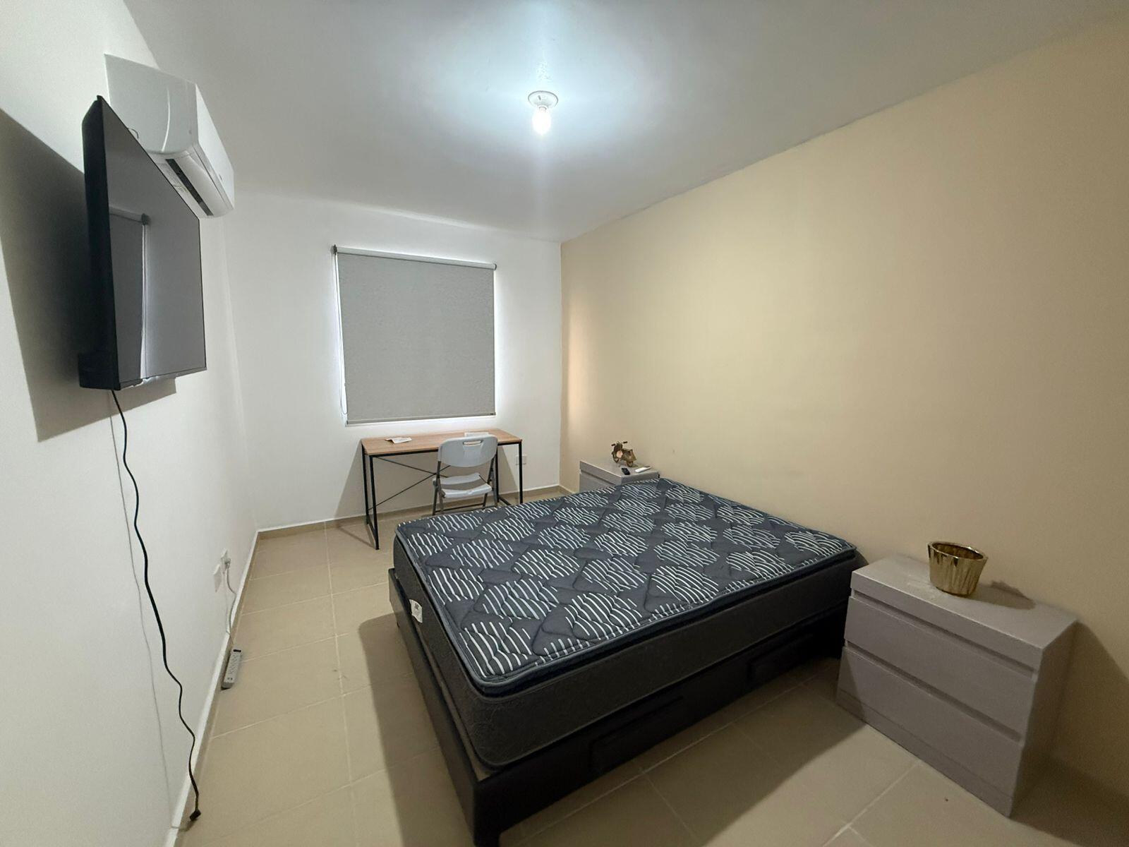 2 Recamaras, 3 minisplits, 1.5 Baños completos, Cochera para 1 Auto adentro y 1 afuera, sala, comedor y cocina, lavandería, Refrigerador, boiler, fraccionamiento privado.