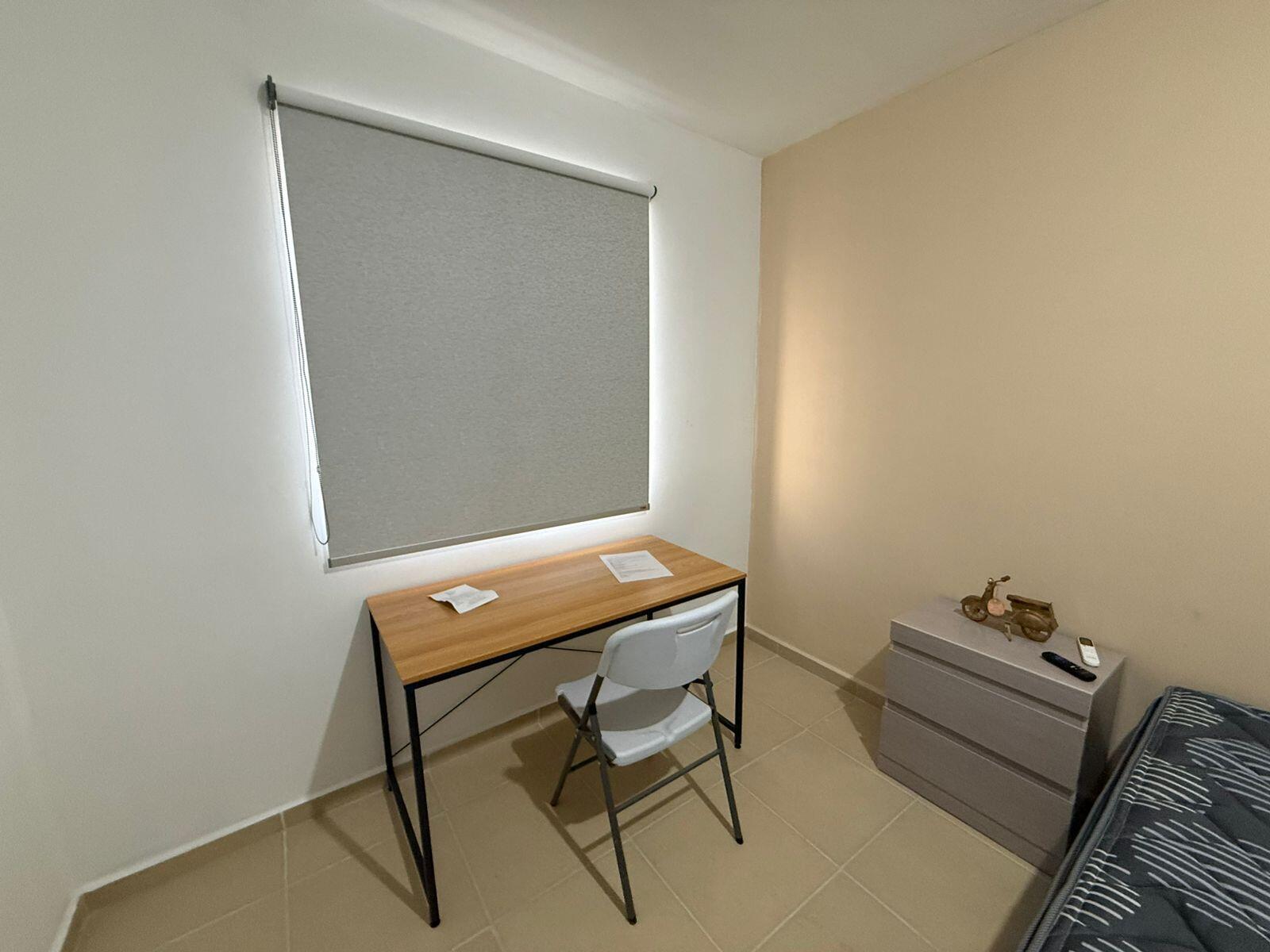 La Casa en Renta cuenta con DOS PLANTAS, Cochera para 1 auto adentro y 1 auto afuera de la propiedad. Excelentes condiciones para habitar. Cuenta con 3 minisplits inverter, cocina nueva de Fórnica, comedor de cristal, sala, 3 televisiones, escritorio para trabajar de home office, persianas black out, closets con 3 cajoneras, base y colchón en las dos habitaciones, 2 burós, así como lavadora y tallador. La propiedad cuenta con protectores y puerta mosquitera.